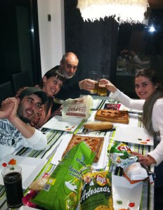 Finalmente y para relajarnos un poquito, Estela nos acogió amablemente en su queli, para saciarnos el hambre y la sed que acumulábamos de toda la tarde-noche, así que dicho y hecho, un poco de jamón, unas cervezas y como no podía ser de otra manera, unas exquisitas empanadas de bonito, que nos había preparado por la tarde, nuestra querida amiga Elena de la Panadería Cisneros, fueron suficientes para que nos apalancásemos tanto, tanto, tanto, que la propia anfitriona , nos tuvo que echar a gorrazos pasadas las 12 de la noche….(lógicamente lo de los gorrazos es broma… lo de la apalancada… no…).