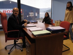 Dado que ya habíamos grabado una primera secuencia de Mayra, allá por el mes de Noviembre de 2.010 (ya ha llovido…), en la que ésta se encuentra entrevistándose con el bueno de Benito, en las oficinas de Planyursa (Ohmsa), éste Sábado nos dedicamos a re-grabar dicha secuencia, con nuestra nueva incorporación Verónica y un Ramón Díez de Velasco pletórico y exultante, en su última e inesperada vuelta a los ruedos, interpretando de nuevo a su personaje fetiche, Benito, con una fuerza inusitada.