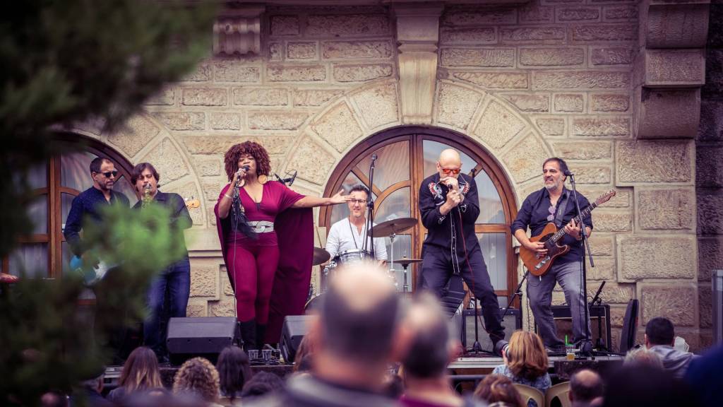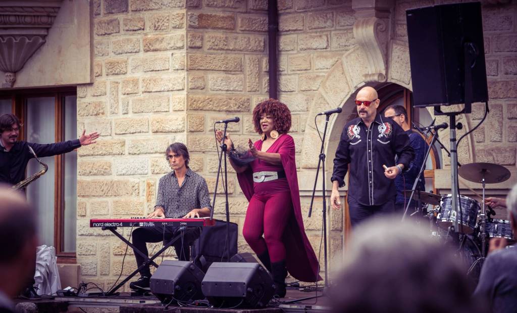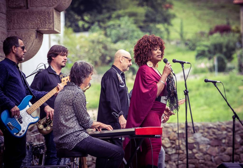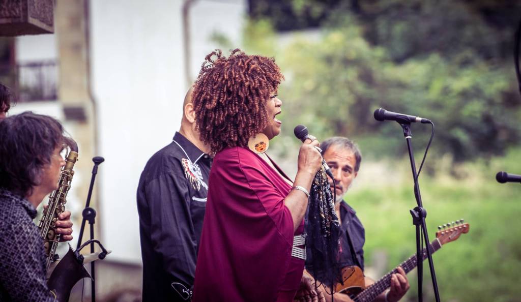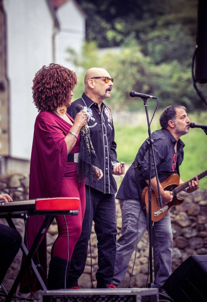 El pasado domingo 16 pudimos disfrutar, gracias a originARTE, de un pedazo de concierto al aire libre en los jardines del Ayto. de Puente Viesgo, en el que se juntaron la cantante y compositora norteamericana Trudy Lynn, varias veces nominada para los Blues Music Award, con el incombustible Steve Krase, ambos acompañados magníficamente por los Travelling Brothers.